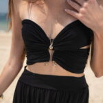 Model is 175 cm, / 87-67-87 and is wearing a size XS