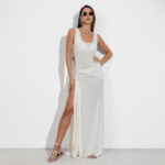 The Soleya White Dress is light itself, pure, radiant, and endlessly free. Airy and sheer, it captures the essence of sunlit days and effortless elegance. The refined knot gently defines your silhouette, while the flowing slit moves with your every step.